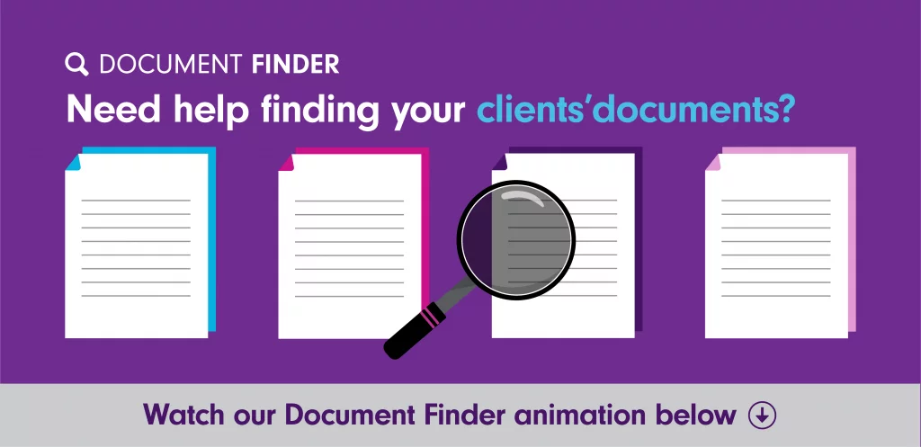 We’ve listened to your feedback and developed the Document Finder to help guide you to your clients’ documents. For video subtitles please click the three dots on the video menu and select Captions.